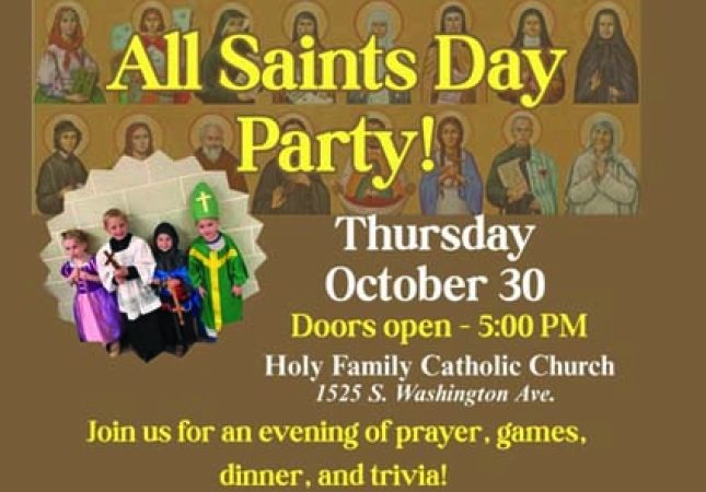 Kids, teens, and adults are encouraged to dress as your favorite saint - share their story and enjoy an evening of games, trivia, and prayer!