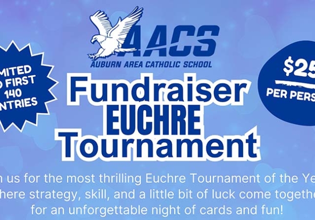 Join us for the most thrilling Euchre Tournament of the year – where strategy, skill, and a little bit of luck come together for an unforgettable night of cards and fun— all to support the Auburn Area Catholic School community!