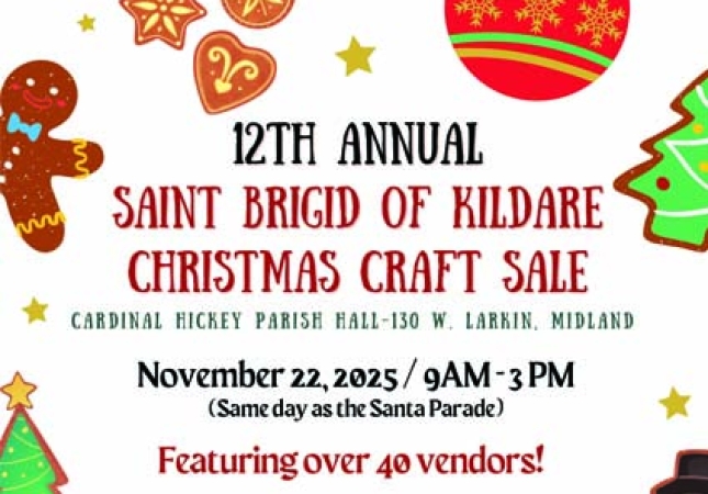 St. Brigid of Kildare in Midland will be holding their 12th Annual Christmas Craft Sale on November 22, from 9:00 AM to 3:00 PM in the school gym.