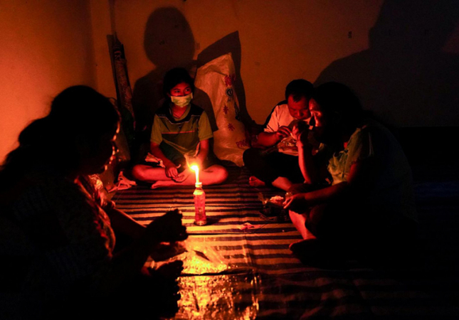 Villagers fleeing the violence in Myanmar are pictured under candlelight at a school in the Thai border village of Mae Sam Laep. Cardinal Charles Bo is asking the people of Myanmar to say the rosary and participate in eucharistic adoration for peace and justice. (CNS photo/Athit Perawongmetha, Reuters)