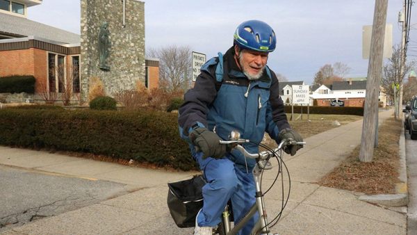 Priest, 79, braves cold to make pilgrimage of prayer for Ukraine by bike